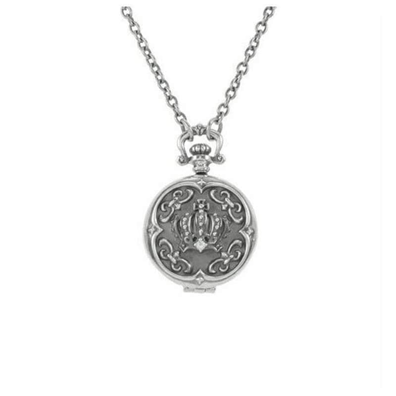 シルバー キュービック クラウンクロックペンダント ロケットペンダント