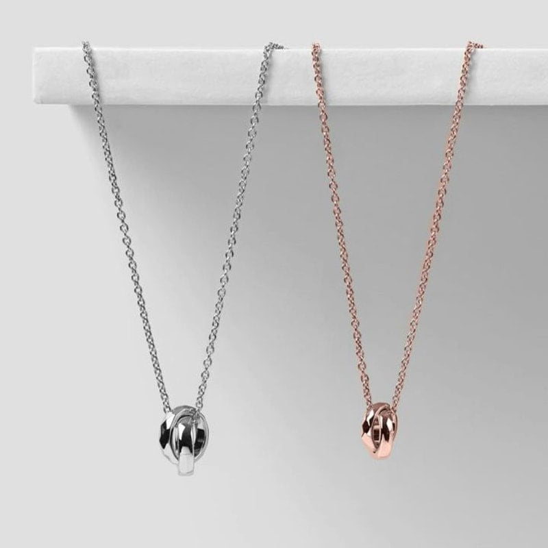 ジ・エッジダブルリングペアネックレス/シルバー&ピンク/シルバー925