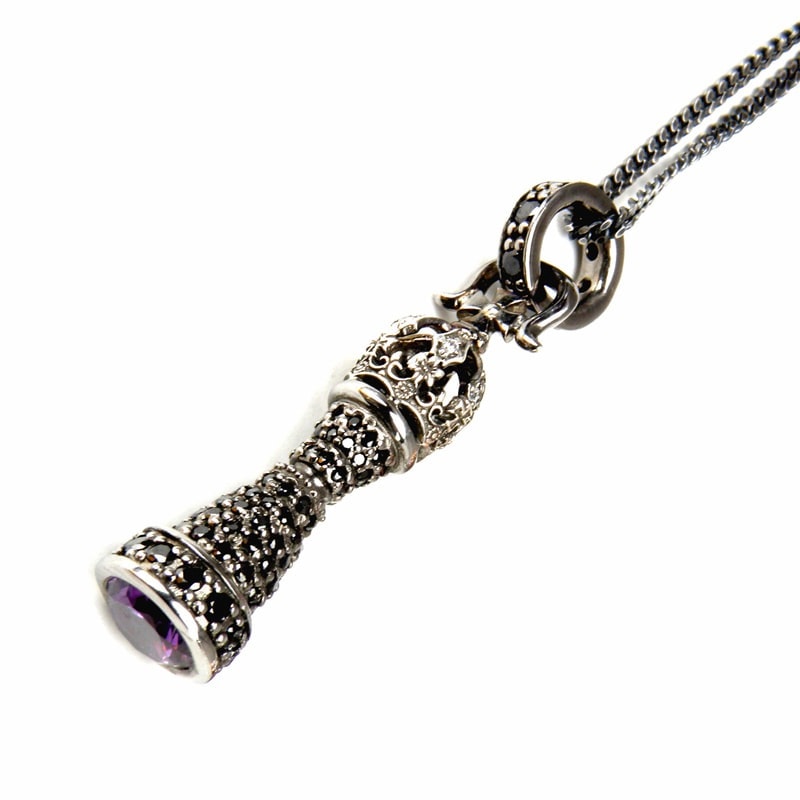 シルバー キュービックジルコニア 人工アレキサンドライト ネックレス キングチェスチャーム
