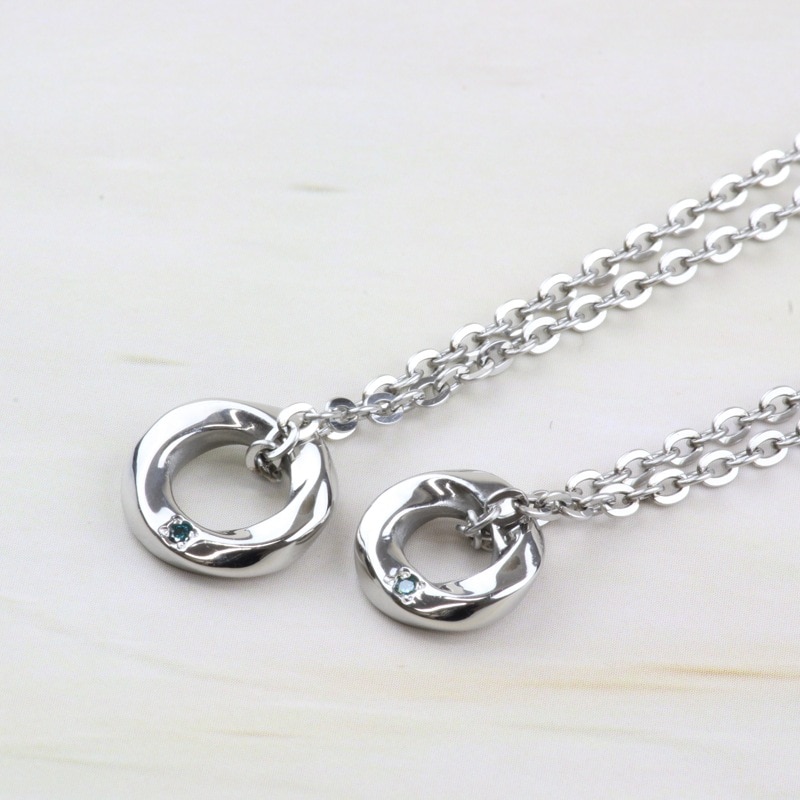 ワンポイントに「永遠の幸せ」「絆を深める」と言った意味のあるブルーダイヤモンドをセットしました。メビウスモチーフは、お名前の通り“メビウスの輪”。 終わりがないことから“永遠”という意味で知られています。 ラッキーモチーフです。すっきりした印象とともに、上品で柔らかい印象を与えてくれます。