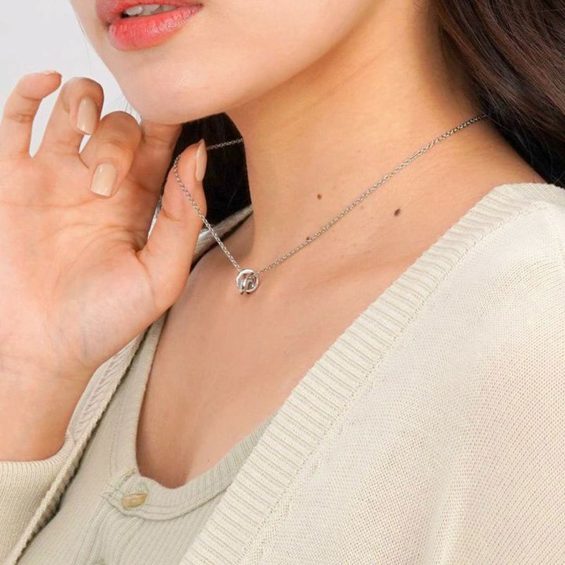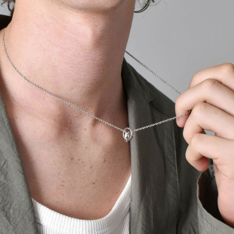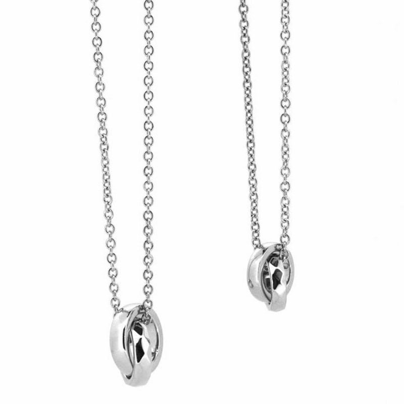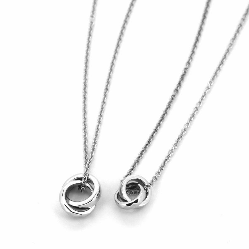 シンプルなデザインのダブルリングペアネックレス。