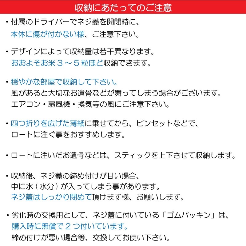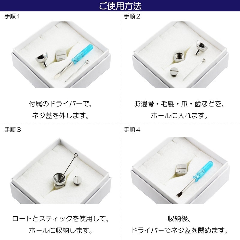 ネジ蓋を開けたホールに遺骨・毛髪・爪・歯などを収納出来ます。