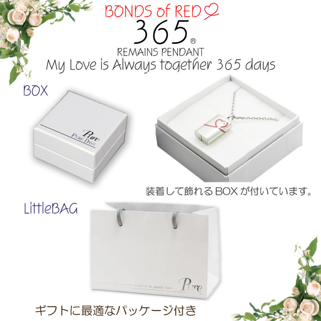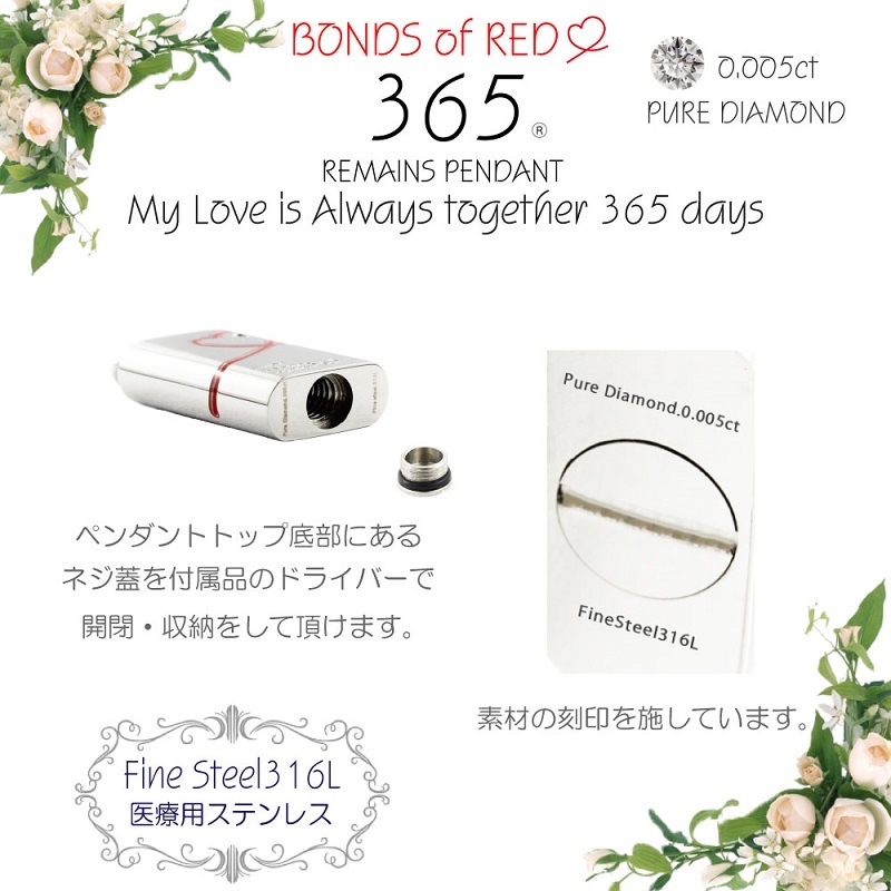 赤い絆とされる赤い糸で模ったハート、1年を表す365,永遠の絆とされる天然ダイヤモンド、