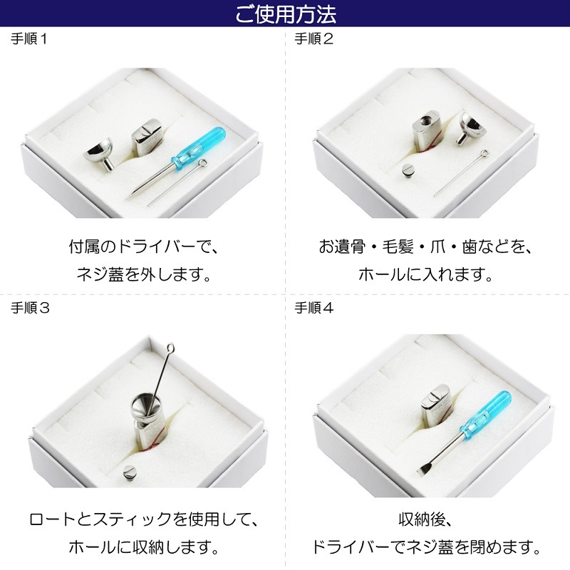 ネジ蓋を開けたホールに遺骨・毛髪・爪・歯などを収納出来ます。
