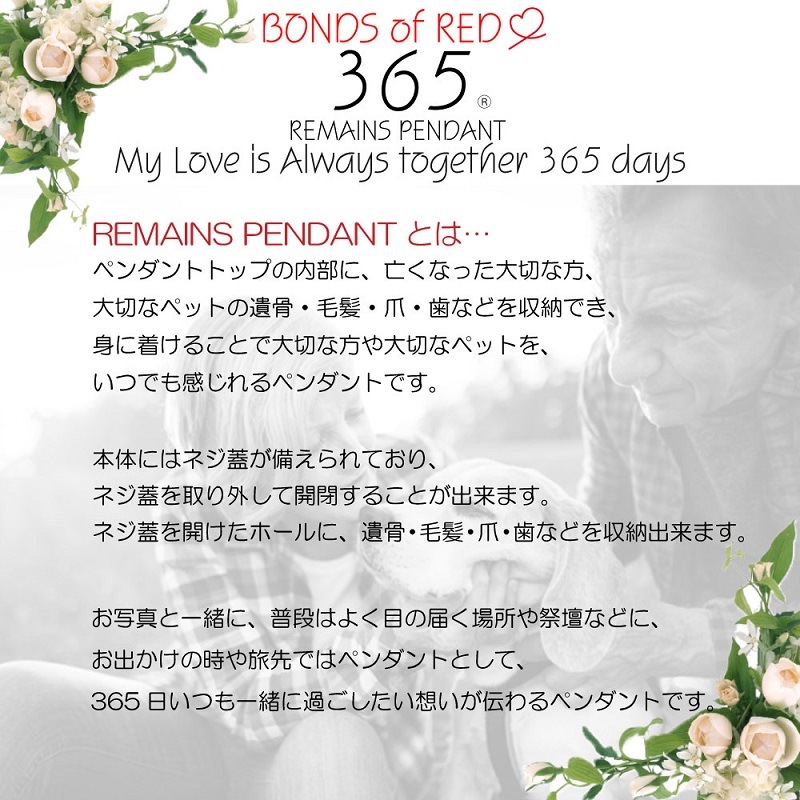 ペンダントの内部に、亡くなった大切な方やペットの遺骨・毛髪・爪・歯などを収納でき、身に着けることで大切な方、大切なペットをいつでも感じれるものです。