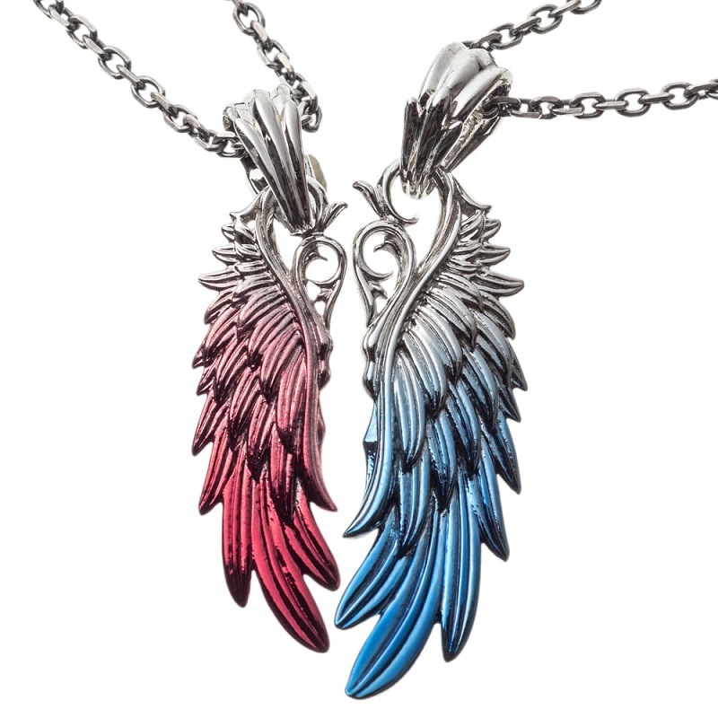 赤バージョンとセットでペアジュエリーとしてもお薦め。翼上部に施された唐草模様は、赤と青のペアで合わせるとハート型になるデザイン。