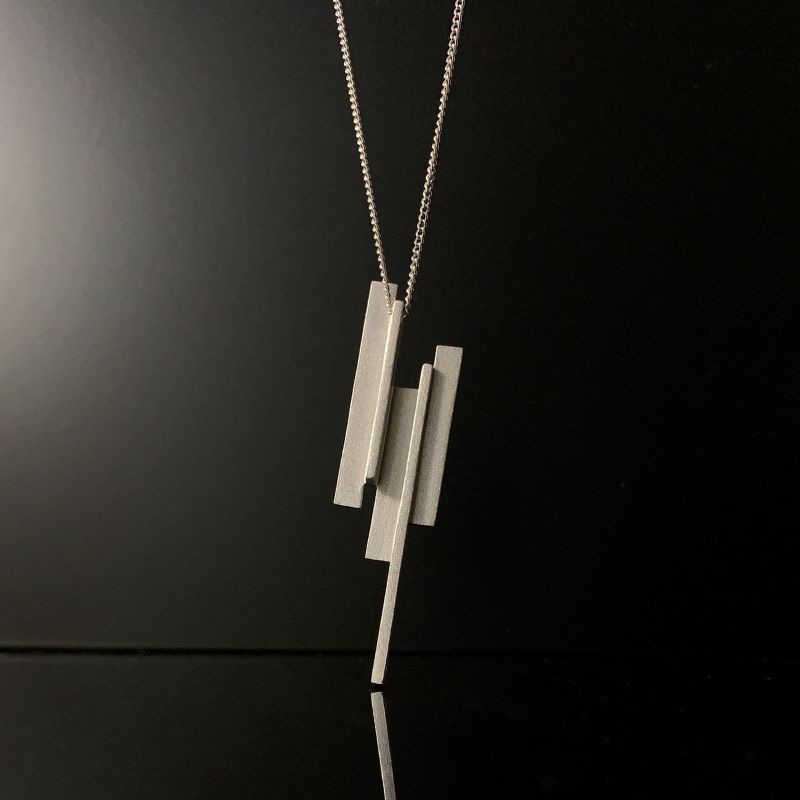 透明で清冽な氷柱を表現したシルバーネックレス。