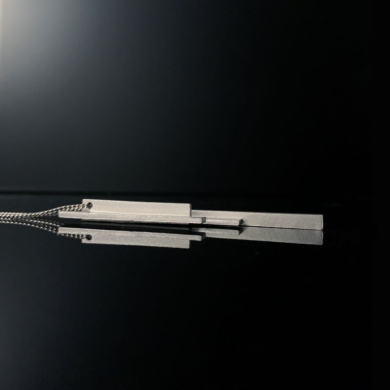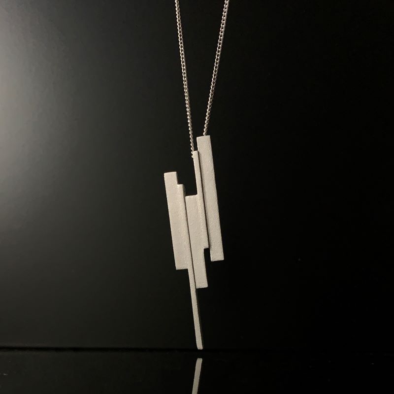 水滴が垂れてできる氷柱をモチーフにした首飾りです。和テイストをシンプルなデザインに仕上げています。