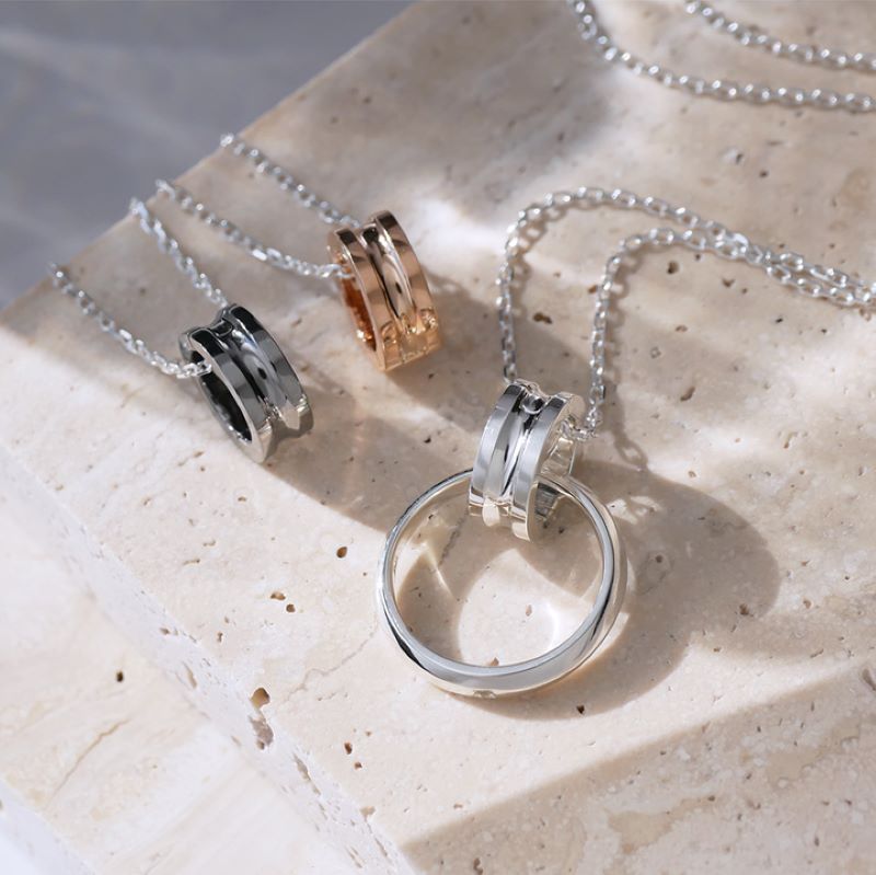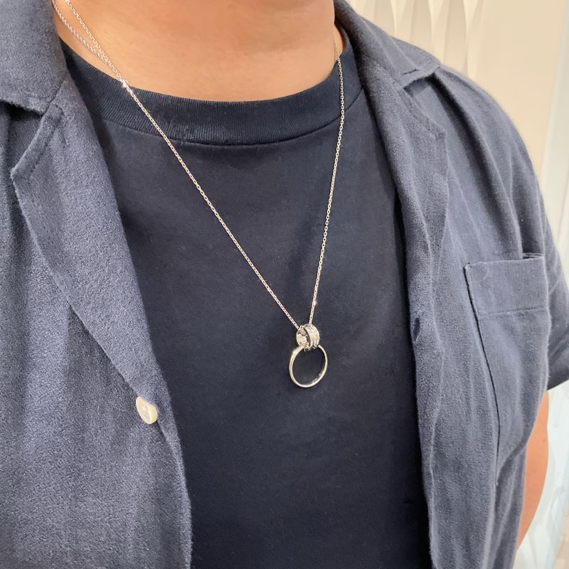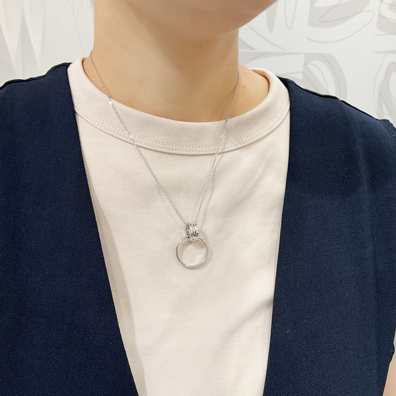 リングホルダーとしてはもちろん、リングを付けずに単品使いでリングモチーフのネックレスとしてもお使いいただける2way ネックレス。異なるテクスチャを組合せて柔らかな輝きをまとわせました。シンプルで洗練されたデザインで、男女ともにカジュアルなTシャツからシックなセーターなど、どのコーディネ―トとも相性が良くシーンを問わずご着用いただけます。