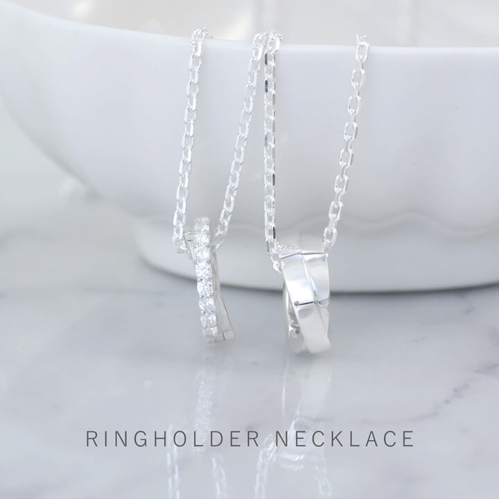 仕事や家事で指輪が着けられない方やサイズが合わなくなっても大切に身に着けていたい方々の悩みに、リングホルダーが全て解決してくれます。普段指輪をしない方もリングホルダーにお手持ちの指輪を通せばネックレスとして身に着けられます(幅約6mmまでのリングと組み合わせが可能です)。