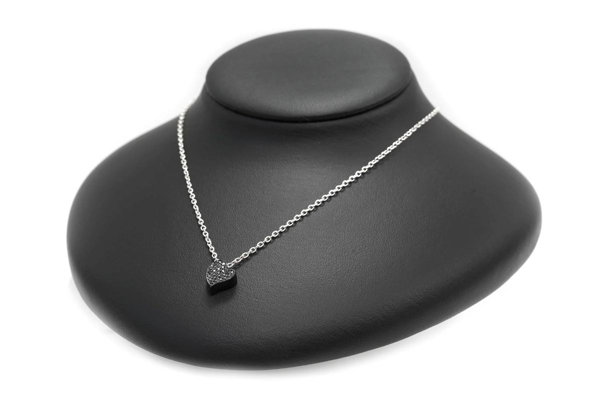 ブラックカラーの落ち着いたトーンが、ハート全面に敷き詰められたキュービックジルコニアの輝きをより印象的に演出。甘くなりがちなハートモチーフを、クールで洗練された表情へと昇華しています。